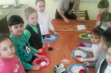 Воспитанники кружка "Кройки и шитья" изготовили подарки своим мамам, красочные салфетки.