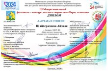 Шәйхеразиева Айзилә III нче төбәкара балалар иҗаты "Парад талантов" фестиваль - конкурсында катнашып II нче дәрәҗә дипломга лаек булды!