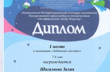 Поздравляем ученицу объединения "Основы графики и дизайна" Шагалиеву Язилю с победой на конкурсе декоративно - прикладного творчества "Поздравление Деду Морозу"!