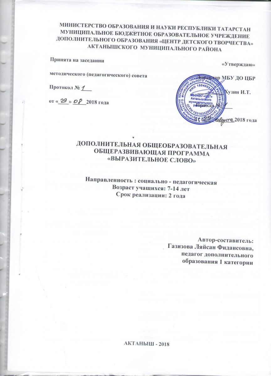 Программа дополнительного образования детей: " Выразительное слово "