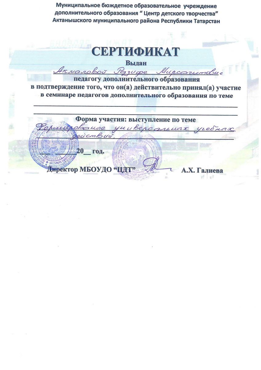 | Короткое название: | МБОУДО "ЦДТ" Актанышского муниципального района РТ |