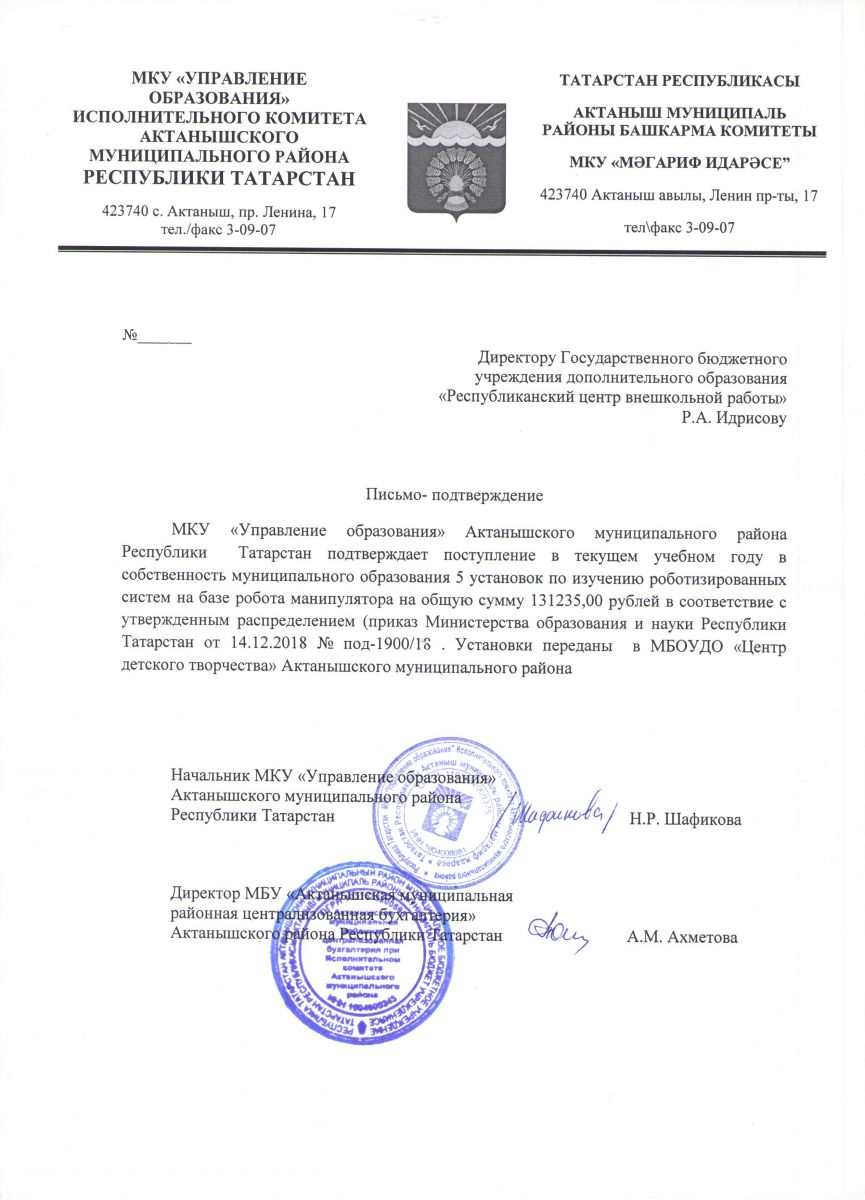 | Адрес: | 423740, РТ, Актанышский район, с. Актаныш, ул. Юбилейная, д. 111 |