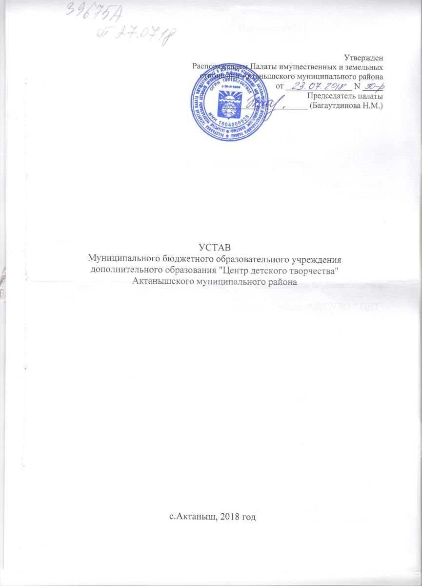 Муниципальное бюджетное образовательное учреждение дополнительного образования "Центр детского творчества" Актанышского муниципального района РТ
