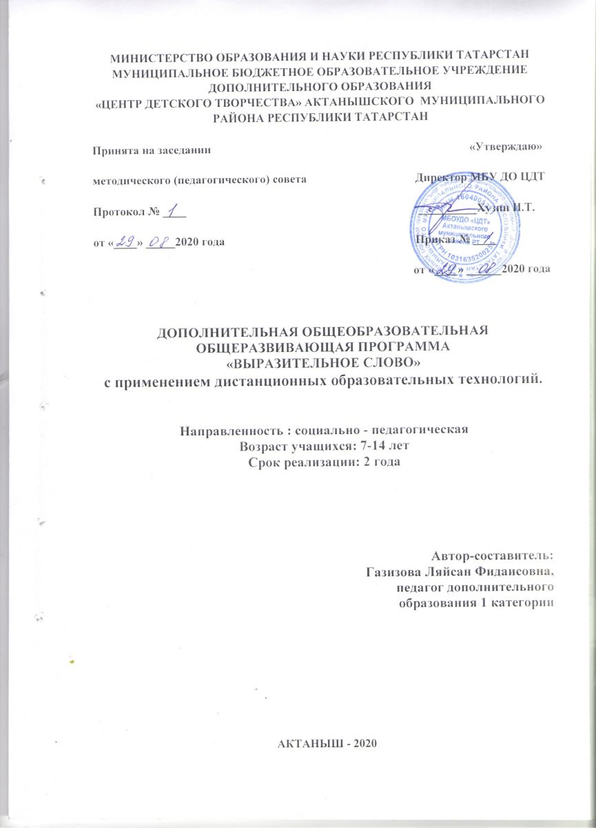 Муниципальное бюджетное образовательное учреждение дополнительного образования "Центр детского творчества" Актанышского муниципального района РТ