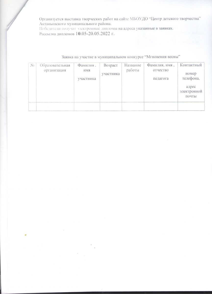 Муниципальное бюджетное образовательное учреждение дополнительного образования "Центр детского творчества" Актанышского муниципального района РТ