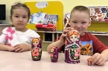 Рус теле атналыгы кысаларында балалар халык декоратив-гамәли сәнгате белән таныштылар. Алар халык уенчыкларын кызыксынып карадылар, борынгы заманда аларны нәрсәдән ясаганнарын белделәр. Матрешканың барлыкка килү тарихы белән таныштылар./ В рамках недели русского языка дети познакомились с народным декоративно-прикладным искусством. Они с интересом разглядывали народные игрушки, узнали из чего изготавливали их в старину. Познакомились с историей возникновения матрёшки.