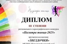 Безнең балалар бакчасында тәрбияләнүче Газизова Язилә «Бию палитрасы 2025» төбәк конкурсында «Халык биюе»номинациясендә 3 нче урынны алды. Котлыйбыз! / Воспитанница нашего детского сада Газизова Язиля заняла 3 место в региональном конкурсе «Палитра танца 2025» в номинации «Народный танец». Поздравляем!