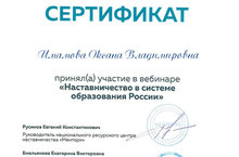 Имамова Оксана приняла участие в вебинаре 09.01.2017