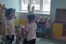 Зурлар торкеме балалары ин кече яшьтэге торкем балаларына А.Алишнын ,Куян кызы" экиятен сэхнэлэштереп курсэттелэр./ Дети старшей группы инсценировали сказку А. Алиша "Зайчиха " для детей младшей группы.