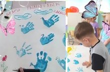 Балаларга патриотик тәрбия бирү максатыннан, Украинада хәрби операциядә катнашучы егетләребезгә балалар үз куллары белән рәсем ясадылар.\\ С целью патриотического воспитания ребят, воспитанники старшей группы рисовали своими руками участникам военной операции на Украине.