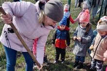 Яшелләндерү эше.\\Озеленение территории. 05.05.2023 Балалар бакчасы территориясен яшелләндерү эше дәвам итә.\\Продолжается работа по озеленению территории детского сада.
