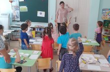 Мәктәпкә әзерлек төркеме балалары мәктәпкә экскурсиягә бардылар. Балаларны мәктәп директоры Алсу Рашит кызы мәктәп, спорт залы, музей, класс белән таныштырды.\\На экскурсию в школу отправились дети подготовительной группы. Директор школы Алсу Рашитовна ознакомила детей со школой, спортивным залом, музеем, классом.