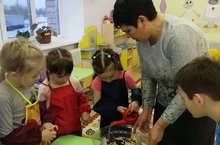 Бүген мәктәпкә әзерлек төркеме балалары (тәрбияче Р.Ф.Камалова) тәҗрибә үткәрделәр.Балалар бодай, арпа, арыш чәчтеләр.// Дети подготовительной к школе группы проводили различные опыты. Они научили сеять пшеницу, рожь и ячменя.