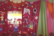 Бүген балаларга Яр Чаллы курчак театры "Барбоскины" театрын тәкъдим итте. Балаларга начар гадәтләрне булдырмаска, культура-гигиеник кагыйдәләрне сакларга кирәклеге аңлатылды.// Сегодня театр кукол города Н.Челны представил театр "Барбоскины". Дети с интересом смотрели театр, в котором говорилась о культурно-гигиенических навыках.