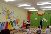 Музыка- кешенең гомерлек юлдашы.Шуның белән бергә ул-бик яхшы тәрбия чарасы да. музыкаль белем бирү эшчәнлекләрендә балалар җырлап, биеп кенә калмыйлар, ә төрле музыка уен коралларында да уйнарга өйрәнәләр. Бу аларга музыканы тыңларга, ритмны тоярга ярдәм итә.// Музыка-самое яркое.Музыкальная деятельность в детском саду-источник особой радости для мадышей.Дети на занятиях музыки не только танцуют и поют, а с желанием играют на музыкальных инструментах.