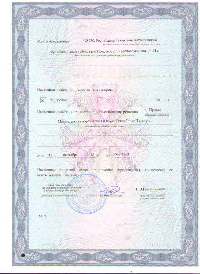 | Адрес: | 423730, Республика Татарстан, Актанышский район, село Поисево, ул. Красноармейская, д. 14а |