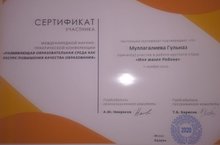 Татар теле һәм әдәбияты укытучысы Гөлназ Кашаф кызы Муллагалиева "Развивающая образовательная среда как ресурс повышения качества образования" Халыкара фәнни-практик конференциядә катнашып сертификатка ия булды.