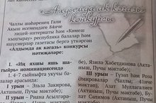 По итогам конкурса "Алдымда ак кәгазь" в номинации "Иң яхшы яшь шагыйрь" среди учащихся 4 - 7 классов: