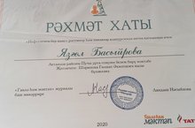 Ученица 10 класса Язгуль Басыйрова за активное участие в конкурсе рисунков и рассказов "Нефтьченең бер көне" получила Благодарственное письмо. Руководитель: Гульшат Аметшаеховна Шарипова.