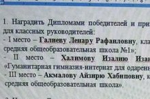 Ученица 7 класса Алина Исламова участвовала на республиканской олимпиаде школьников по русской литературе. Руководитель: Гульназ Амирхановна Зарипова