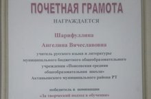 Поздравляем! Ангелина Вячеславовна Шарифуллина учитель русского языка и литературы Победитель муниципального этапа республиканского конкурса "Учитель года -2020" в номинации "За творческий подход в обучении".