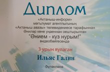 Котлыйбыз! 2 нче класс укучысы Галин Ильяс "Актаныш-информ" мәгълүмәт агентлыгының "Актаныш авазы" телевидениесе тарафыннан Әниләр көне уңаеннан оештырылган "Әнием - күз нурым!" видеобәйгесендә 3 урын яулаган һәм диплом белән бүләкләнә.