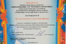 Поздравляем победителя профессионального конкурса "Образование: ОТ ТЕОРИИ К ПРАКТИКЕ" среди педагогических работников Актанышского муниципального района номинация "татарский язык и литература" учителя: Гульназ Кашафовну.