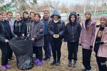 Көннәр җылынгач мәктәптә экологик юнәлеш буенча эшчәнлек башланды. Укучылар технология дәресендә мәктәп яны территориясен җыештырырга чыктылар. Фотода 6 класс укучылары.
