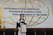 Айгөл Бөтендөнья татар конгрессында оештырылган бүләкләү тантанасында катнашты. Җиңүче укучылар Рәхмәт хаты һәм истәлекле бүләккә ия булдылар. Җитәкчесе Шәрипова Гөлшат Әхмәтшәех кызын һәм Айгөлне уңышлары белән чын күңелдән котлыйбыз!!! -