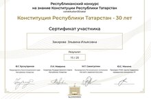 Ученица 8 класса Закирова Эльвина приняла участие на республиканском конкурсе "Конституция Республики Татарстан-30лет".