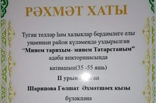 Гөлшат Әхмәтшәех кызы Шарипова тарих укытучысы "Минем тарихым - минем Татарстаным" бәйгесендә катнашып 2 урын яулаган.