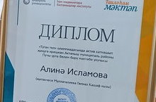8 сыйныф укучысы Исламова Алинә "Гаилә һәм мәктәп" журналы оештырган "Туган тел" олимпиадасында актив катнашып җиңүгә иреште һәм бүләкләнде. Афәрин, Алинә! Укытучы: Гөлназ Кашаф кызы Муллагалиева.
