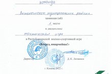 5-7 cентября в Казанском республиканском спортивно-патриотическом центре допризывной подготовки молодежи «Патриот» прошел зональный этап Всероссийской военно-спортивной игры «Вперед, юнармейцы!". Ребята показывали свое умение в разборке и сборке автомата Калашникова, беге на 60 м., военно-спортивной игре, подтягивании на перекладине, метании гранаты, строевой подготовке, снаряжении магазина автомата Калашникова и др. Команда Актанышской кадетской школы-интернат заняла III место по подтягиванию на перекладине, I место по военно-тактической игре, III место по конкурсу «Статен в строю, силен в бою» и II место по интеллектуальному конкурсу. В личных достижениях Бадретдинова Азалия заняла I место по бегу на 60 м., Шаехмурзина Гульяр II место по бегу на 60 м., Фаррахов Айрат III место по подтягиванию на перекладине. Победители и призёры удостоены Грамотами. Благодарим наших победителей и педагогов за самоотверженный труд на блага родной школы.