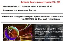 В целях эффективной подготовки выпускников к единому государственному экзамену и государственной (итоговой) аттестации в новой форме,16 и 17 апреля 2013 года проводится Интернет-форум в социально-образовательной сети Казанского (Приволжского) федерального университета «Буду студентом!» www.abiturient.ksu.ru.