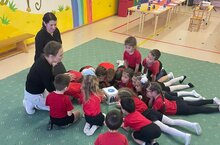 Тылсым балалар бакчасында зурлар төркеме ата-аналары өчен математика һәм физкультура буенча ачык интеграцияләнгән шөгыль узды. Балалар үзләренең белемнәрен һәм осталыкларын күрсәттеләр: балалар уен формасында саннар, геометрик формалар, "зуррак, кечерәк, тигез" билгеләре турында күзаллауларын ныгыттылар, дөрес итеп исәп буенча хәрәкәтләр башкарырга өйрәнделәр, тәрбияче сигналы буенча тукталыш белән колоннада берәм-берәм йөрү күнекмәләрен үзләштерүләрен дәвам иттеләр. Барлык балалар да актив һәм уртак эшчәнлеккә уңай карашта булдылар. Шөгыль бик кызыклы, күпкырлы һәм нәтиҗәле.
