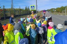 Сегодня воспитанники 2 младшей и подготовительной к школе группы МБДОУ "Детский сад 7 с.Актаныш" в рамках Всероссийской "Недели безопасности дорожного движения" отправились на экскурсию в осенний лес. По пути они вспомнили правила безопасного поведения на дорогах, закрепили знания о сигналах светофора, о знаке "Пешеходный переход".На данном мероприятие приняла участие Л.Р.Мухаметова, начальник отдела пропаганды ОГИБДД ОМВД России по Актанышскому району.Лейсан Радифовна провела с детьми беседу о необходимости соблюдения ПДД и подарила детям памятные подарки.