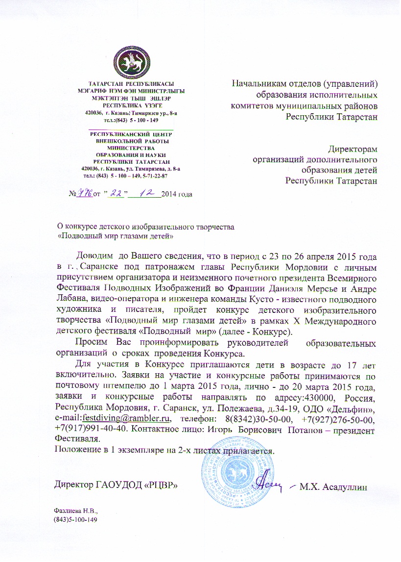О проведении республиканских конкурсов в течение 2014/2015 учебного года