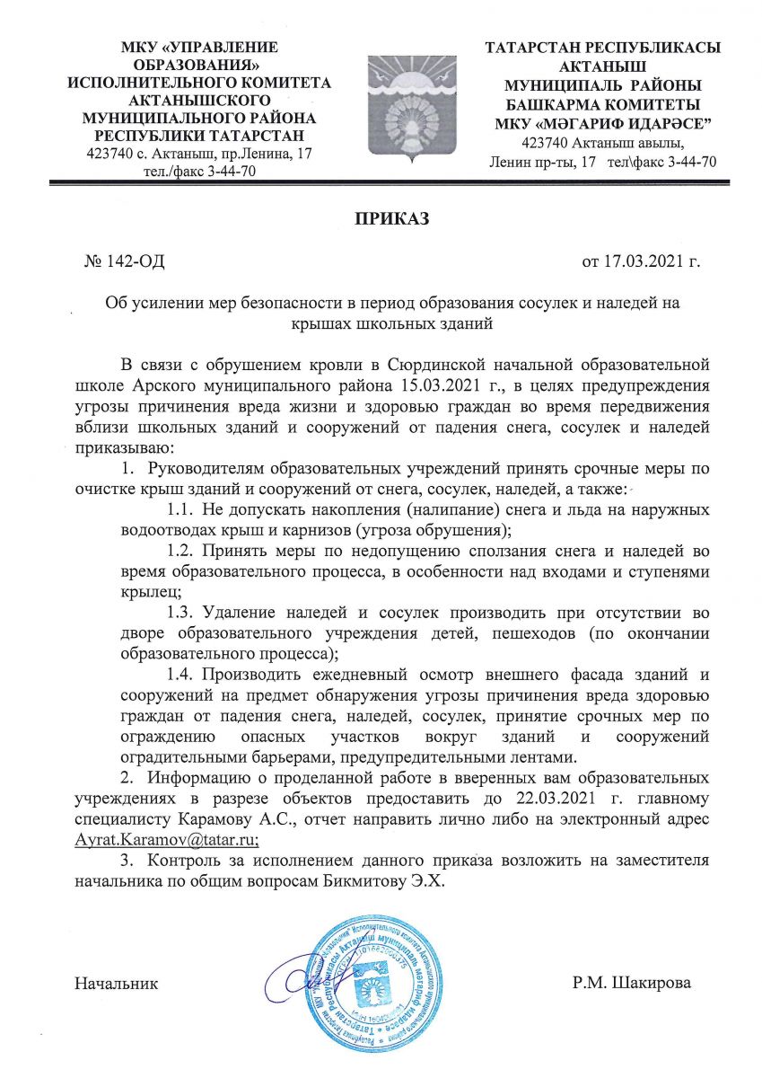 Приказ Министерства образования и науки Республики Татарстан № под-385/21 от 19.03.2021