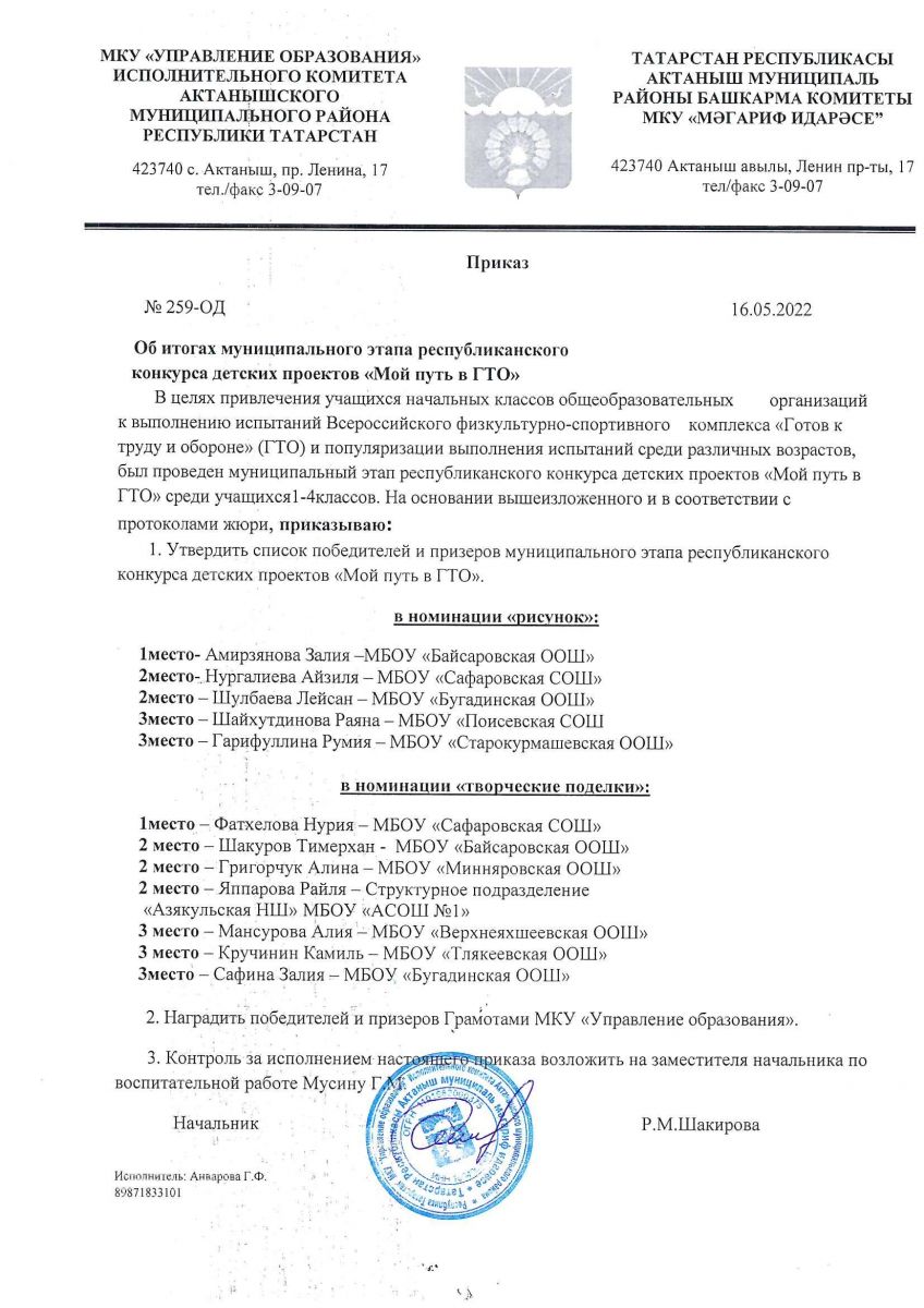Об итогах муниципального этапа республиканского конкурса детских проектов "Мой путь в ГТО"
