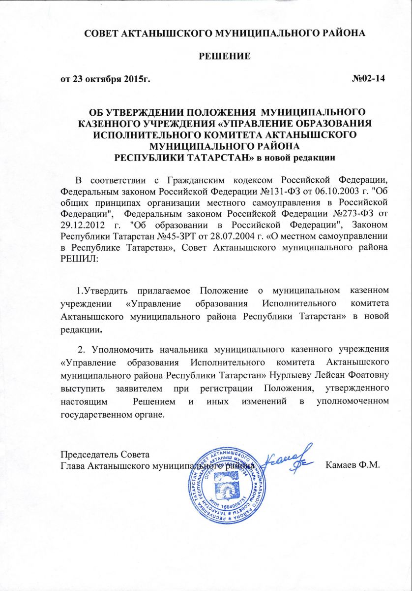 О разграничении полномочий в сфере образования в Актанышском муниципальном районе РТ