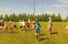 6 нчы июнь көнне лагерьга йөрүче балалар авыл Сабантуенда дәртле биюләре белән чыгыш ясадылар.