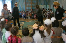 Бүген бездә Нижнекамск курчак театры Бөек Җиңүнең 70 еллыгына багышланган "Бабамның медальләре" дигән театр күрсәттеләр.Балалар сугышның никадәр ачы , аяусыз икәнлеген театр барышында тагын бер кат аңладылар.Күгебез аяз,тормышыбыз тыныч булсын, сугыш афәте башка кабатланмасын.