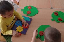 Беренче кечкенә төркем балалары еш кына шнуровка уйныйлар. Мондый уеннар игътибарны арттыра, ныклыкны үстерә. / Дети первой младшей группы часто играют в шнуровки. Такие игры повышают концентрацию внимания, развивают усидчивость.