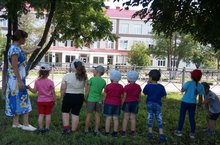 Тиздән бик тиздән чәчәчкле, кояшлы җәйләр үтеп алтын көзләр дә килер. Мәктәпләр гөрләп эшләрен башлап җибәрер. Әлеге бу биналарда тынлык. Шулай булуга да карамастан, читтән генә карап танышу максатыннан бакча балалары белән беренче мәктәп бинасы янына юнәлдек. Балалар шулай итеп беренче мәктәп белән якыннанрак таныштылар. Кайберләренең абый-апалары әлеге мәктәптә укулары турында искәртеп үтелде.