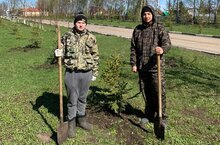 Юноши нашей школы учавствуют в озеленении района.