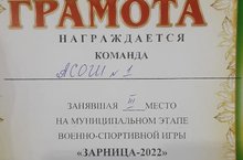 Поздравляем команду школы занявшую III место на муниципальном этапе военно-спортивной игры "Зарница-2022"!