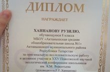 Ученица 8а класса Ханнанова Рузиля приняла участие в XXV Поволжской научной экологической конференции школьников им.А.М.Терентьева и награждена дипломом за оригинальную исследовательскую работу и активное участие. Руководитель - Ханнанова Руфина Рифовна. Молодцы! Поздравляем!