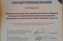 Педагоги и учащиеся школы принимают активное участие в различных акциях и конкурсах, организуемых Общероссийской общественно-государственной организацией "Российское движение школьников". По итогам мероприятий коллектив школы и педагог-организатор Зарипова Гульнур Габитовна лично награждены благодарственными письмами. Поздравляем! Желаем дальнейших успехов!