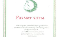 2в сыйныфы укучысы Әмирханова Рәмилә "Ак калфак" хатын-кызлары республика иҗтимагый оешмасының Актаныш районы конференциясендә һәм "Милли күлмәкле курчак" район күргәзмә-конкурсында катнашып, рәхмәт хаты белән бүләкләнде. Котлыйбыз!