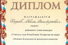 Хазиев Равиль Фагитзянович принял участие в районном этапе конкурса "Учитель года Республики Татарстан по курсу "Основы безопасности жизнедеятельности" и награжден дипломом участника. Поздравляем!